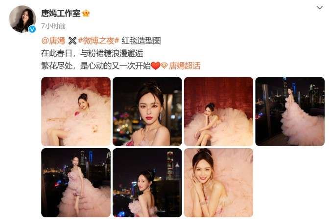 原来,唐嫣当天晚上还有一场品牌直播活动,和微博之夜的时间冲突了。唐嫣的计划是先参加直播活动,直播结束后再赶去参加微博之夜。