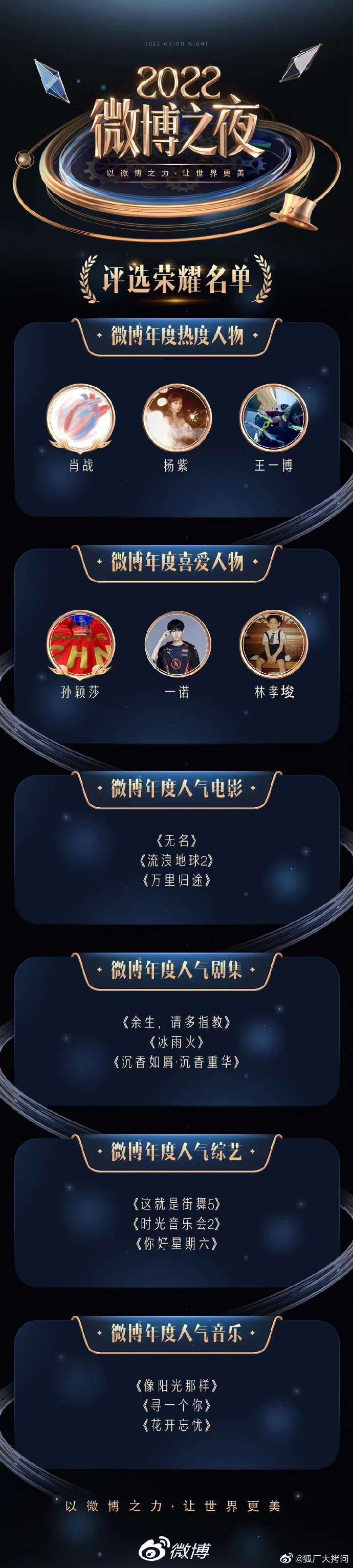 以上就是2023《微博之夜》评选名单汇总的全部内容,想要了解更多相关内容的小伙伴可以持续关注本站,这里每天会为大家推送最新最全的娱乐资讯,一定不要错过哦。
