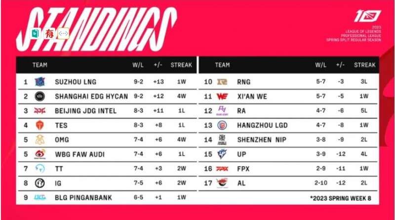 以上就是《2023LPL3月9日春季赛排名积分榜》的全部内容,想要了解更多相关内容的小伙伴可以持续关注本站,这里每天会为大家推送最新最全的游戏资讯,一定不要错过哦。