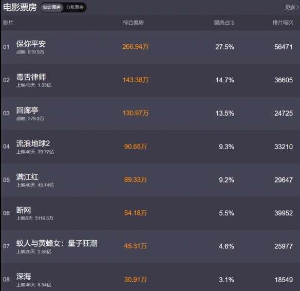 2023.3.8妇女节票房排行榜,今天有回廊亭和保你平安两部电影开启了点映,将在3月10日上线,那么3月8日妇女节目前上映的电影的票房情况是什么样的呢?本篇将为大家带来女节票房排行榜内容,感兴趣的小伙伴们一起来看看吧,希望能够帮助到大家。