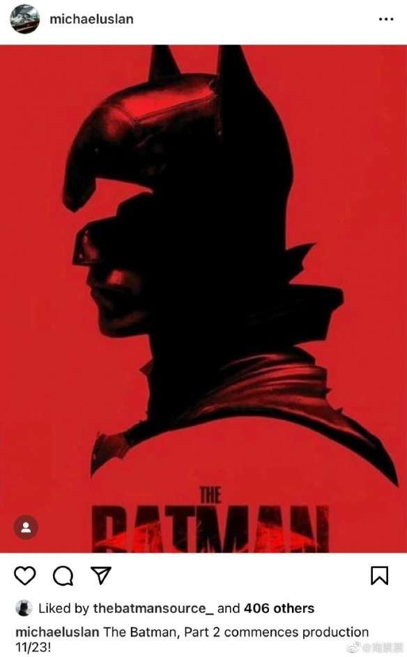 据执行制片人Michael Uslan确认,电影《新蝙蝠侠》续集(The Batman -Part II)将于今年11月开拍,接下来几个月将陆续开始选角和前期制作。