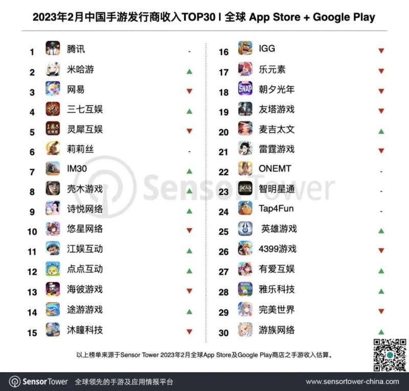 以上就是2023年2月中国手游发行商全球收入排行榜的全部内容,想要了解更多相关内容的小伙伴可以持续关注本站,这里每天会为大家推送最新最全的游戏资讯,一定不要错过哦。