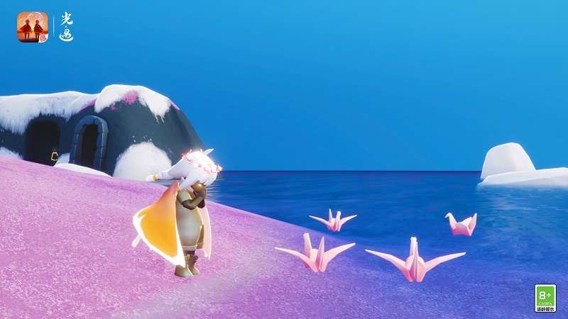 留言纸船会化身为粉色的千纸鹤“歇憩”水面;前往遇境商船,每天可领取留言纸鹤*1。