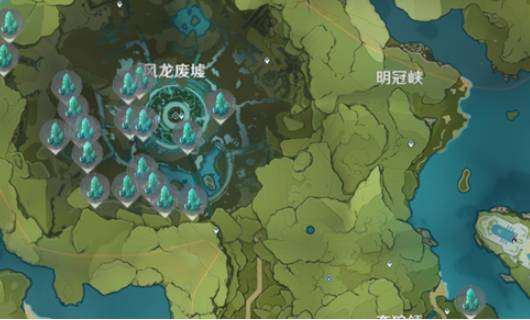 其中,庆云顶是水晶块分布最多的位置,风龙废墟是第二密集区域,再就是南部大片区域,其中95%采集水晶矿分布位置都在这三个区域。