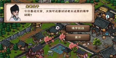 NPC:朱老夫子(在私塾这里)参与填字挑战,可以获得888元宝。