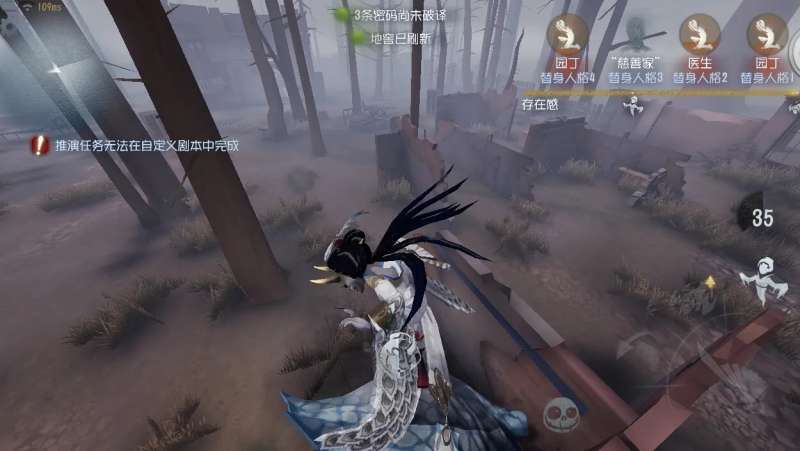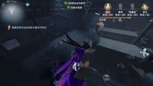 第二个点位站在中心区右边的大树下我们把视角往左拉可以看见窗户,我们也是可以飞过去,因为旁边就是电机,在两块板都下了的情况下还可以搞突袭,因为这块区域只有这两块板,突袭完成之后该怎么回去呢?站在左边板的前面,但也不要太往板中间,这里就是第三个点位,站在木桶前面起飞,这里相对前面的比较容易,因为周围都是空地,求生者根本逃不出你的手掌心,轻松结束这场游戏。