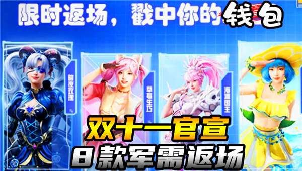 和平精英2022双十一返场皮肤有哪些?和平精英这款吃鸡手游里,玩家要做的就是生存到最后来获得胜利,而且超大的地图可以自由探索,可以通过遥控跳伞的方式选择你的降落点,如果是多排的话,还可以直接跟随,这样无需操作也能跟着对方一起行动。和平精英除了有着丰富的武器外,很多小伙伴对游戏里的皮肤也是非常感兴趣,比较皮肤造型都很独特,能够展现玩家独特的个性与审美。而且有些皮肤是限定的,甚至有些是联动推出,稀有度非常高,玩家只有通过一些特殊的活动才能购买。近期和平精英将上线双十一活动,会在商城返场很多皮肤,那么有哪些呢?今天就由小编为大家介绍一下吧。