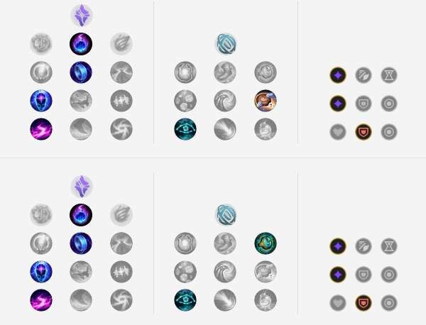 这套符文就是打消耗,因为回复法力和自适应增加法力都有,所以我们就需要一直使用技能消耗对手,让我们可以在对战中不断的骚扰对面输出,并且我们的技能冷却非常快,所以回复法力就很重要了。