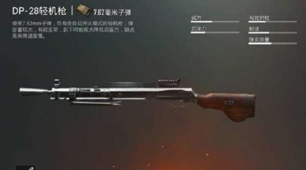 这把枪仅仅出现于空投物资中,其拥有恐怖的100发弹夹容量,也是扫车利器,试想一下一辆车经过大菠萝100发子弹的洗礼后,还能安安稳稳的行驶吗?当然所有枪有利也有弊,大菠萝在超高弹夹容量的基础上,后坐力也是高的恐怖,这也局限了这把枪的使用范围。推荐在使用这把枪的时候,在情况允许的情况下,可以趴下进行扫射,因为大菠萝具有前支架,在趴下时后坐力会明显减少。这对压枪不是很熟练的小伙伴来说,应该是一个更好的选择。大菠萝还有一个致命的缺点就是换弹速度极慢,这对很多有“换弹强迫症”的小伙伴来说是非常难受的。建议在换弹的时候先观察好四周的情况,以及找好相应的掩体。不然可能子弹没换好,就被打趴在地了。