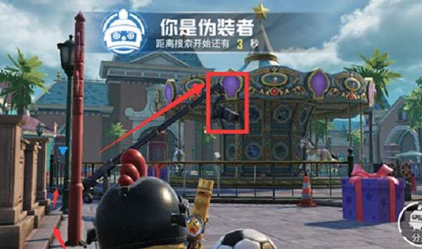 在广场那里会有一个黄色的餐车,玩家可以变身成小物件,然后跳到餐车中,这个位置十分隐蔽即使有排查区也扫不到,不过不要分身,不然太引人注意了。