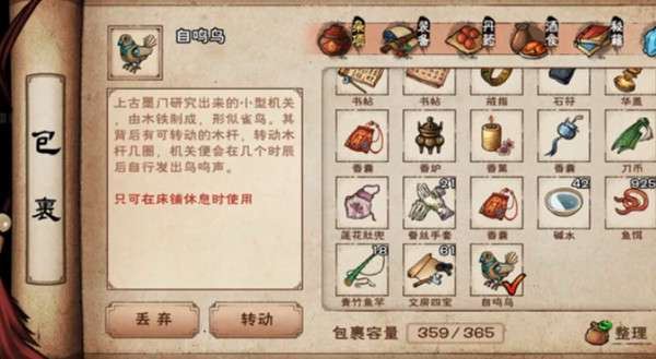 制作完之后就可以得到自鸣鸟这个道具了,是可以永久使用的,其功能就类似于闹钟。