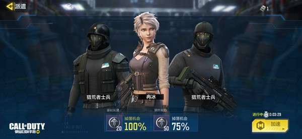 选择物资点之后,可以进入派遣界面。在派遣界面中,战士们可以选择3名已解锁的角色进行派遣。不同的角色,进入不同物资点的成功率不同。当三名角色的累计成功率超过100%时,有机会获得额外的奉献点奖励。