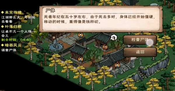 3、调查尸体后继续和秋小霜等人对话,提示前往案发地