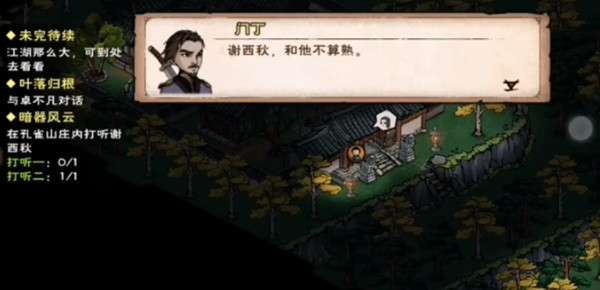 7、返回孔雀山庄,过剧情,然后继续在山庄内打听谢西秋的情报。