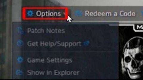 1、找到电脑上的使命召唤17,之后点击左侧上方位置的options。