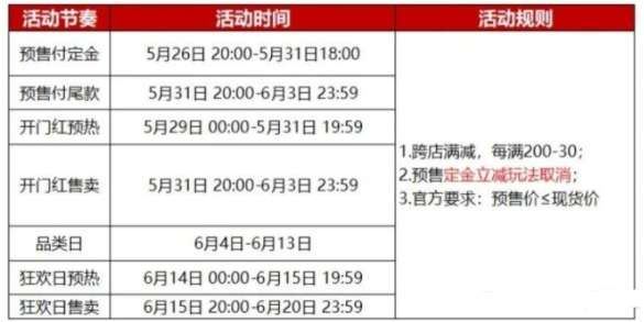 2022淘宝天猫618整体活动时间为5月26日至6月20日,其中5月26日-5月31日为预售期,活动正式开启时间为6月16日-6月20日: