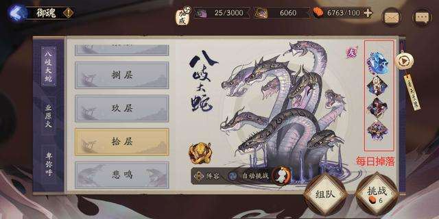 普通御魂的获取渠道就比较多了,首先就是御魂副本,目前的御魂里面有三个部分,八岐大蛇、业原火和日轮之陨,每个部分会出特定的御魂。八岐大蛇可以掉落的御魂比较多,也是玩家们最长去肝的副本,而且八岐大蛇会在周一~周五掉落限定的御魂,萌新可以在会出针女、破势这样的输出御魂时多肝一肝,如果这套没有什么有用的御魂,就不必过多的浪费时间了。