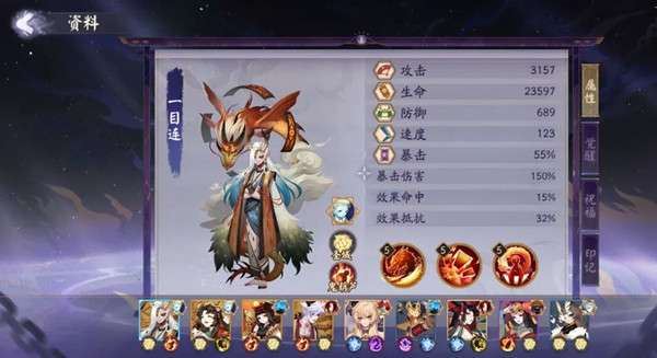 作战阵容选择完毕后,大人可点击「资料」查看当前阵容中所拥有的式神属性、觉醒、祝福及印记