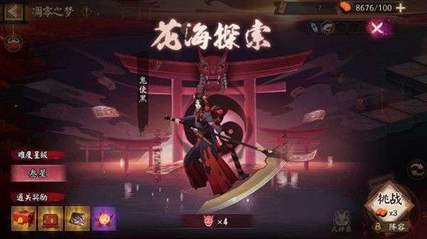 挑战成功后,大人可获得「彼岸花烛」、「手札·荒骷髅」、大蛇的逆鳞、阴阳寮勋章、金币及随机御魂等奖励