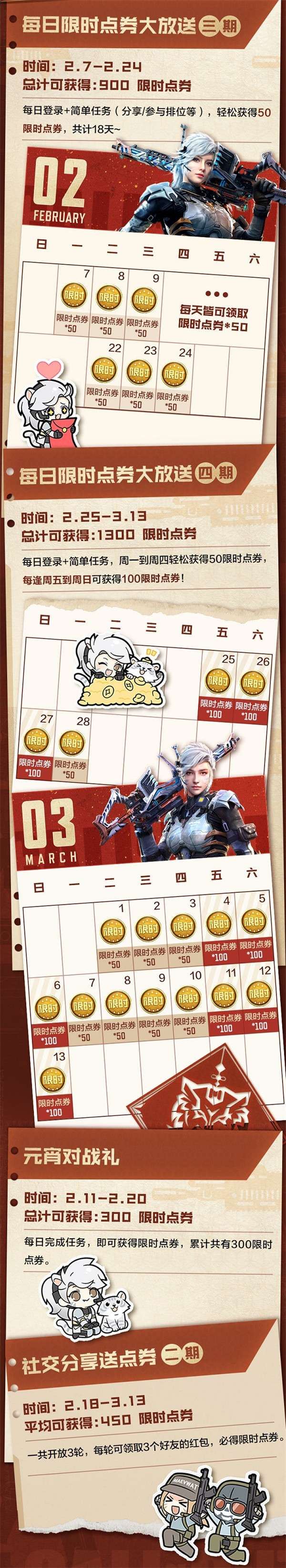 2、没薅到的战士也不要灰心,艾本薅点券(节后版)即将于2月7日上线啦!老规矩,完整薅点券攻略奉上,本次的每日任务更加简单,轻轻松松即可将海量点券薅进囊中!千万别错过啦