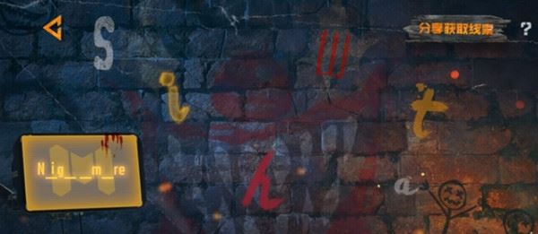 需要使用墙上的字母来拼写单词,最终填空得到的单词是nightmare,所以需要填入的字母依次为:ihta