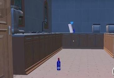 众所周知体积越小就越难被发现,这里推荐玩家们变成酒瓶,这个酒瓶就在搜索者出生的房间里,就在这个位置的蓝色瓶子,过去的时候小心不要被发现,变成瓶子之后再藏在隐蔽的位置,比如说汽车地下等等。