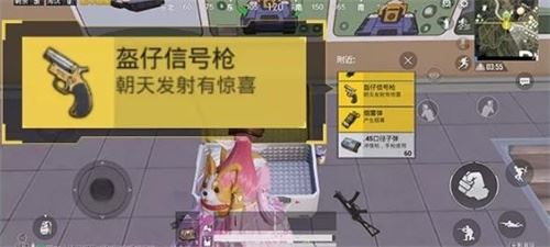 3、盔仔信号枪的获得上,小伙伴们可以在地图上找到黄色的小楼(小地图亦可通过对应的图案搜寻),在这里即可有机会获得。