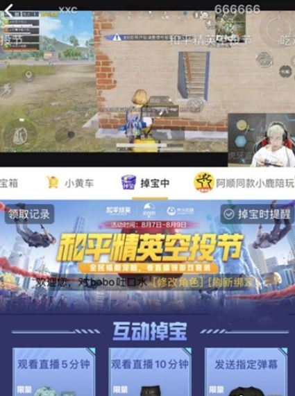 首先在dy直播里面找到和平精英板块,可以看到这种显示掉宝的直播(下图所示),“掉宝中”;