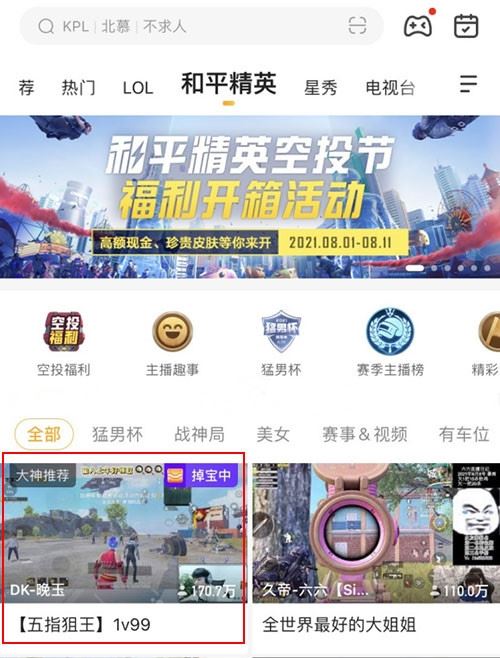 这个就是需要玩家在斗鱼直播里面,然后找到和平精英板块,可以看到这种显示掉宝的,就是在里面可以看到有个掉宝中。