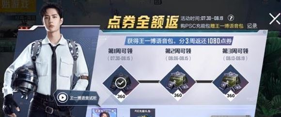 游戏内买王一博语音包可以获得,花98元送你王一博的语音包和升级枪皮的材料,再分三周返你点券。