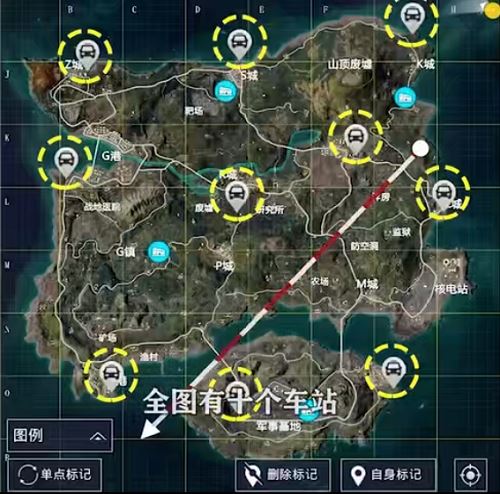 1、如上图所示,矩阵租车点分别位于z城、s城、K城、G港、p城、军事基地等大城市中,大家按照小编给出的图示即可轻松找到。