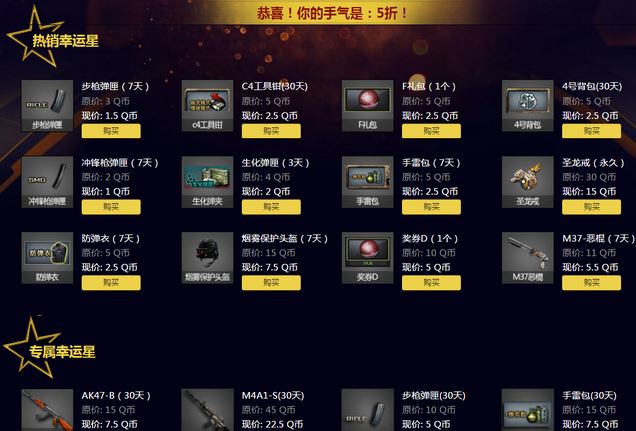 3、每个用户拥有一次抽取折扣的机会,之后可以凭借折扣价格购买对应的道具;