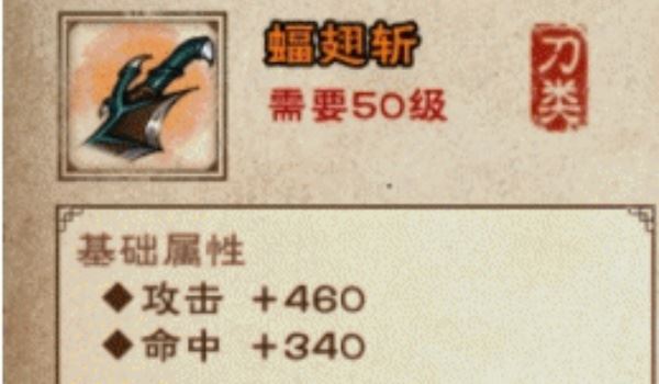 1、蝠翅斩是一种刀类的技能,要求玩家达到50级即可进行使用。