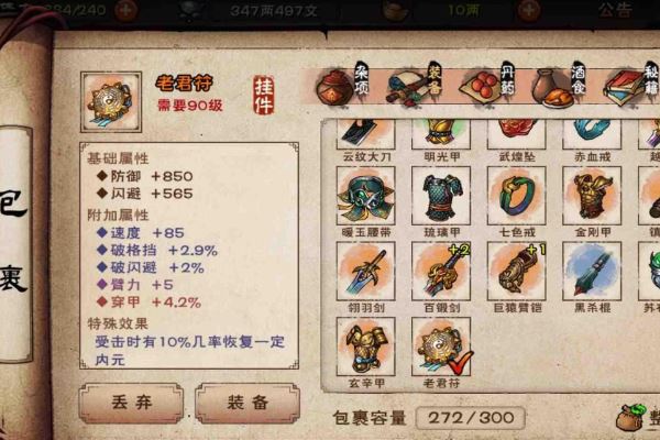 1、老君符,是一种永久性的道具,可以给玩家增加防御力和攻击力。