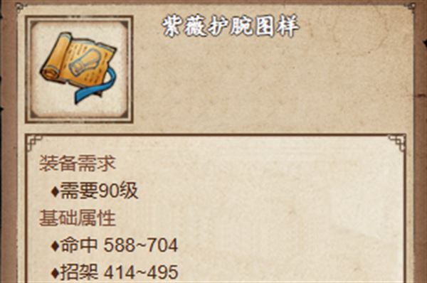 2、装备效果命中+640,招架+450,属性值加成还是比价不错的,可以优先考虑击杀野怪掉落获取。