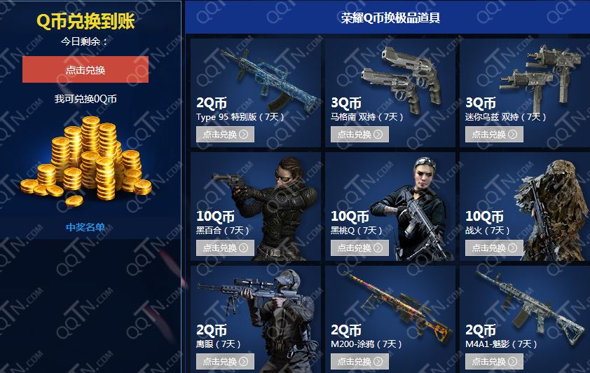 活动期间内完成下列相应任务,次日可以领取Q币,Q币可以在下方兑换到账,也可以兑换游戏道具