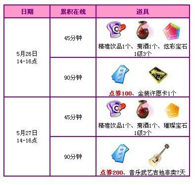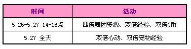 5.26-5.27每天14点至16点开启四倍舞团资源、双倍经验、双倍G币。