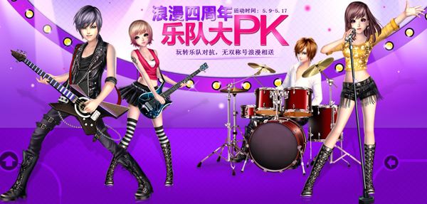 四周年将至,QQ炫舞为大家准备了“浪漫四周年 乐队大PK”系列活动,玩转乐队对抗模式,赢取无双称号吧!