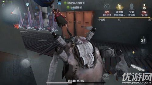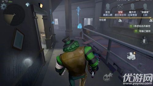 但你被抓,第一时间发信号提醒队友的救助,因为地下室楼梯较长,屠夫需要花费的时间多,这样如果队伍中有前锋,空军就可以及时使用技能帮助你逃脱,避免被绑到地下室。