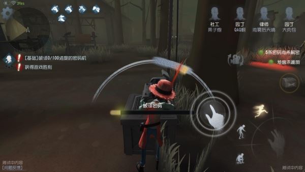 3、园丁在破译过程中一般是不会矫正错误的,除非失误,因为范围真的很大了。所以在破译过程中,不要忘乎所以,一旦监管者接近或者失误下,就最好换台机器继续破译。