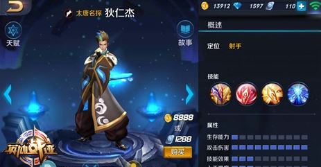 最后给大家推荐狄仁杰,需要8888金币。狄仁杰是远程射手,伤害无与伦比,搭配上符文天赋,1V1敌人不敢靠近,3V3辅助秒杀,玩家差不多到13级左右就可以购买了,还是挺容易获得的。