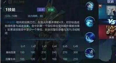 一技能:铠向前投掷刀刃,在敌人中最多弹射4次,对目标造成xx点物理伤害和减速,命中的第一个单位将会受到额外眩晕和减速效果,如果该技能至少命中一个单位,则会回复生命值与30%冷却时间。