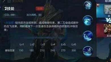 二技能:铠向前连续挥砍,造成xx点物理伤害,第二刀会造成额外的击飞效果,同时使下一次普攻获得额外的伤害和冲锋效果。