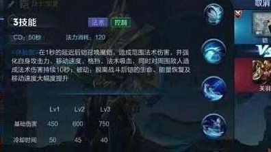 三技能:在1秒的延迟后铠召唤魔铠,造成范围xx点法术伤害,并强化自身攻击力、移动速度、格挡、法术吸血,同时对周围敌人造成法术伤害持续十秒。被动:脱离战斗后铠的生命、能量恢复、移动速度将大幅度提升