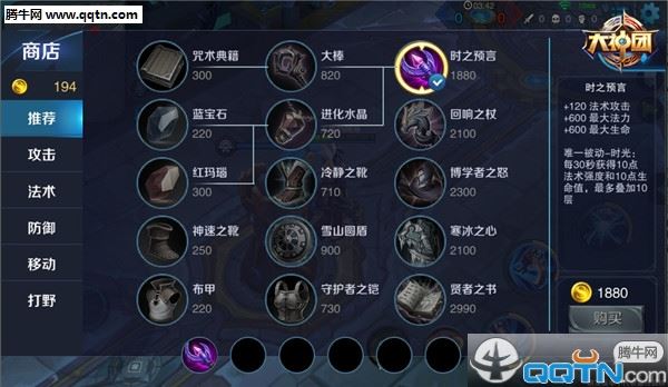 时之预言可为钟馗直接带来600点的生命和法力值附加,同时120点的法术攻击补足了钟馗作为坦克输出较低的短板,每30秒获得一次的10点法强和10点生命的叠加,让钟馗的作战能力得到持续增强;寒冰之心可以增加钟馗500点法力值和高达360点的防御力,被动效果降低敌方攻击速度让我方更加安全,最重要的是寒冰之心减少20%冷却时间的技能效果可以让钟馗的湮灭之锁技能加快冷却恢复,让钟馗可以更快的多次勾取敌人。