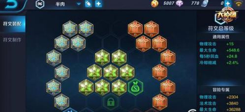 全套符文(30个)总属性:物理攻击+32,最大生命值+975,每5秒回血+45,冷却缩短+6%。