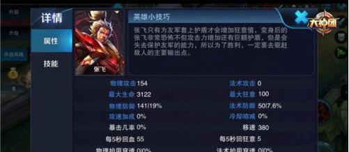 张飞在《王者荣耀》中属于坦克英雄,输出上不算突出,但生存能力强,因此可略微减弱生存用于提升攻击,所以在出装和符文搭配方面都偏向半肉。张飞在大招前后,有着两种形态,在不同的形态下,张飞的技能效果会产生变化。入狂后的张飞所有技能输出伤害均得到了强化,配合被动技能效果,使得张飞释放技能时,也能造成范围性的减速效果。