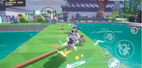 2、星宝们需在跑道上躲避各种的机关来避免掉入到水中;
